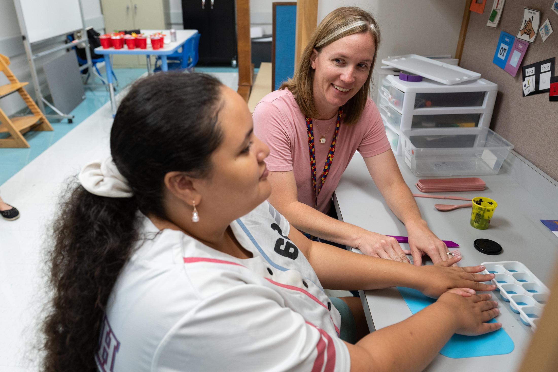 The Timothy School’s Occupational Therapy (OT) department supports students in developing the daily living, educational and vocational skills essential for greater independence. Occupational therapists work with students individually and in small groups to address fine motor skills, bilateral coordination, motor planning, sensory processing and visual-perceptual integration.